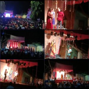 বীরভূম, নিজস্ব সংবাদদাতা:- বীরভূম জেলা রাজনগর মালিপাড়ায় ত্রাণ সমিতির পরিচালনায় রাত্রে যাত্রানুষ্ঠানের আয়োজন করা হয়৷ কলকাতার অঞ্জলি অপেরার যাত্রাপালা ” সময় জানে সত্যের ঠিকানা ” পরিবেশিত হয়৷ যাত্রা দেখতে অগণিত দর্শক ও যাত্রাপ্রেমী মানুষ ভিড় জমান৷ মহিলাদের উপস্থিতিও ছিল যথেষ্ট৷ যাত্রা চলাকালীন কয়েকঘন্টা পরেও দর্শকদের উপচে পড়া ভিড় লক্ষ্য করা যায়৷ বেশ কয়েক বছর পর এমন সুন্দর যাত্রাপালা দেখার সুযোগ পাওয়ায় খুশি দর্শকরা৷ তাঁরা এরজন্য উদ্যোক্তা ও আয়োজকদের ধন্যবাদ জানিয়েছেন৷ রাজনগর মালিপাড়া ত্রাণ সমিতির কর্মকর্তা, সদস্য ও স্বেচ্ছাসেবকদের তৎপরতা ছিল যথেষ্ট৷ স্থানীয় পুলিশ প্রশাসনও সহযোগিতা করেন৷ শেষ পর্যন্ত সুষ্ঠুভাবে তা সম্পন্ন হয়৷ উল্লেখ্য, রাজনগর মালিপাড়ার বাসিন্দা পেশায় যাত্রাশিল্পী, যাত্রাভিনেতা ও কীর্তনীয়া বনমালী ধীবর এই অপেরার সঙ্গে যুক্ত৷ তিনিও এদিন মঞ্চে অভিনয় করেন৷ অন্যান্য অভিনেতা, অভিনেত্রীদের পাশাপাশি গুরুত্বপূর্ণ চরিত্রে বনমালী ধীবরের সুন্দর দক্ষতাপূর্ণ অভিনয় দেখে মুগ্ধ দর্শক ও স্থানীয় বাসিন্দারা৷ দর্শকদের কেউ কেউ বলেন, আমাদের এলাকার ছেলে যাত্রাভিনেতা বনমালী ধীবরের জন্য আমরা গর্বিত৷ স্থানীয় প্রবীণ বাসিন্দা ও দর্শকদের একাংশের মতে, আগের মতো নিয়মিত আর যাত্রানুষ্ঠান আমাদের এলাকায় হয়না৷ যাত্রা শিল্পীদের অনেকেই এখন সংকটে, সমস্যার মধ্যে দিন কাটান৷ তবু কয়েকটি জেলায় যাত্রার চল রয়েছে৷ বহুদিন পর আমাদের এখানে এই ধরণের যাত্রা পরিবেশিত হওয়ায় খুশি যাত্রাপ্রেমীরা৷