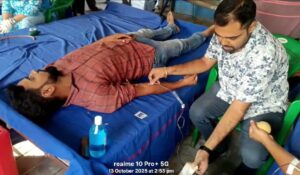 দক্ষিণ দিনাজপুর, নিজস্ব সংবাদদাতাঃ- দক্ষিণ দিনাজপুর জেলার কুশমন্ডি ব্লকের মানিকোর তরুণ সংঘের পরিচালনায় আজ, ১৩ অক্টোবর ২০২৫ সোমবার, অনুষ্ঠিত হলো সংগঠনের ১০ম বার্ষিক স্বেচ্ছায় রক্তদান শিবির। সকাল থেকেই এলাকায় উৎসবের আমেজ লক্ষ্য করা যায়। মানবসেবার এই মহতী উদ্যোগে এলাকার বহু মানুষ স্বতঃস্ফূর্তভাবে অংশ নেন। এদিন মোট ৫৫ জন রক্তদাতা রক্তদান করেন, যা সমাজসেবার ক্ষেত্রে এক প্রশংসনীয় নজির স্থাপন করেছে।