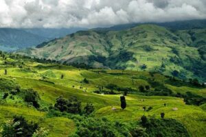 চারদিক ঘিরে পাহাড়, মাঝখানে বিস্তৃত সবুজ ধানক্ষেত, আর তার মধ্যে ছোট ছোট গ্রাম — যেন এক জীবন্ত চিত্রকর্ম।