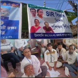 হাওড়া, নিজস্ব সংবাদদাতা:- দক্ষিণ হাওড়া বিধানসভা কেন্দ্রের উনসানি সর্দারপাড়ায় ঘটেছে এক চাঞ্চল্যকর ঘটনা। স্থানীয় একটি ক্লাবের বাইরে ঝুলছে তৃণমূল কংগ্রেসের ব্যানার— “বাংলার ভোট রক্ষা শিবির” এবং “এসআইআর বিষয়ক বিশেষ প্রশিক্ষণ শিবির”— আর সেই ক্লাবের ভেতরেই বসে ভোটার তালিকা সংশোধনের এনুমারেশন ফর্ম বিলি করছেন এক বিএলও!