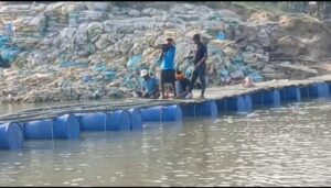 কাঁটা বাঁধে রাস্তাহীন দুর্ভোগ! জলভরা অঞ্চলে জলের ড্রাম দিয়ে ভাসমান রাস্তা বানালেন যুবকেরা।