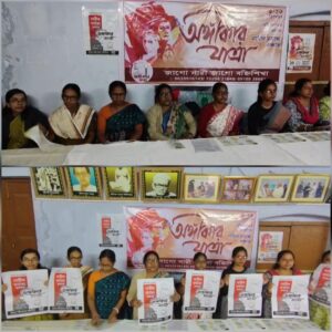 দক্ষিণ দিনাজপুর, নিজস্ব সংবাদদাতা:- আগামী ৯ই ডিসেম্বর থেকে ১৬ই ডিসেম্বর মহিলাদের আহ্বানে নারী সুরক্ষা দাবীতে নারীর মর্যাদা রক্ষার অঙ্গীকার যাত্রা। সেই অঙ্গীকার যাত্রা নিয়ে আজ বালুরঘাট নাট্যমন্দিরের সভাগৃহে জাগো নারী জাগো বহ্নিশিখার আহ্বানে আয়োজিত সাংবাদিক বৈঠক করলেন জেলা অভ্যর্থনা কমিটির সম্পাদিকা তাজরিনা সরকার। তিনি জানালেন আগামী ৯ই ডিসেম্বর থেকে ১৬ই ডিসেম্বর পর্যন্ত এই অঙ্গীকার যাত্রা কোচবিহার, কাকদ্বীপ, ঝাড়গ্রাম সহ অন্যান্য গ্রাম শহর অতিক্রম করে কলকাতায় কলেজ স্ট্রিটে সমাপনী সমাবেশে একত্রিত হবে। নারীদের অধিকার রক্ষার অঙ্গীকার যাত্রায় সবাইকে সামিল হও যার আহ্বান জানান।