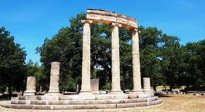- Philippeion: ম্যাসিডোনিয়ার রাজা ফিলিপ দ্বিতীয়ের স্মৃতিতে নির্মিত বৃত্তাকার মার্বেল স্থাপনা।