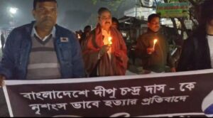 বালুরঘাট, নিজস্ব সংবাদদাতা : – বাংলাদেশে বালুরঘাটের বাসিন্দা দীপু চন্দ্র দাসকে নৃশংসভাবে হত্যার ঘটনায় ক্ষোভ ছড়িয়েছে সীমান্তবর্তী এই অঞ্চলে। আজ বিকেলে বালুপাড়া এলাকায় হিলি মন্ডলের পক্ষ থেকে আহ্বানে এক বিশাল বিক্ষোভ মিছিলের আয়োজন করা হয়। এই মিছিলে উপস্থিত হন বালুরঘাট বিধানসভা ক্ষেত্রের বিধায়ক ড. অশোক কুমার লাহিড়ী, যিনি হত্যাকাণ্ডের নৃশংসতায় কঠোর প্রতিবাদ জানিয়েছেন। তিনি গতকাল বাংলাদেশের হিলি এলাকায় অজ্ঞাতনামা কয়েকজন আক্রমণকারীর হাতে নির্মমভাবে নিহত হন। স্থানীয় সূত্র জানাচ্ছে, হত্যাকাণ্ডের পেছনে ব্যক্তিগত ক্ষোভ বা সীমান্তরক্ষীদের সঙ্গে জড়িত কোনো বিরোধ থাকতে পারে। এই ঘটনায় অধিবাসীদের মধ্যে উত্তেজনা ছড়িয়ে পড়েছে, বিশেষ করে যেহেতু দীপু স্থানীয় হিলি মন্ডলের সঙ্গে ঘনিষ্ঠভাবে যুক্ত ছিলেন।বিক্ষোভ মিছিলে শতাধিক মানুষ অংশ নেয়। মিছিলকারীরা ‘দীপু চন্দ্র দাসের হত্যারা ধরা দাও’, ‘ন্যায়বিচার চাই’ এবং ‘সীমান্তে নিরাপত্তা বাড়াও’ স্লোগান দিতে দিতে বালুপাড়া মোড় থেকে শুরু করে স্থানীয় বাজারপাড়া পর্যন্ত পৌঁছায়। বিধায়ক ড. লাহিড়ী মিছিলের সামনে এগিয়ে এসে বলেন, “দীপু চন্দ্র দাসের মতো একজন নিরীহ মানুষের নৃশংস হত্যা আমরা সহ্য করব না। বাংলাদেশ সরকারের কাছে দ্রুত তদন্তের দাবি জানাচ্ছি এবং সাড়া না পেলে আরও কঠোর আন্দোলনের ঘোষণা দেব।” তিনি স্থানীয় প্রশাসনের কাছেও সীমান্ত এলাকায় নিরাপত্তা বৃদ্ধির দাবি তুলেছেন।