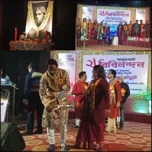 দক্ষিণ দিনাজপুর, নিজস্ব সংবাদদাতা:- ছাব্বিশ তম বর্ষের সংস্কৃতির আলোকে উদ্ভাসিত ”বালুরঘাট রবিনন্দন”। ২৮শে ডিসেম্বর রবিবার সন্ধ্যায় বালুরঘাট নাট্যমন্দিরে ভরা প্রেক্ষাগৃহে অনুষ্ঠিত হল ”বালুরঘাট রবিনন্দন” – এর ছাব্বিশ তম বর্ষের বার্ষিক সাংস্কৃতিক অনুষ্ঠান। সন্ধ্যা ছয়টায় শুরু হওয়া ”বালুরঘাট রবিনন্দন” – এর বার্ষিক অনুষ্ঠানে সঙ্গীত, নৃত্য ও গীতি আলেখ্য পরিবেশিত হয়। এই অনুষ্ঠানে বিশেষ আকর্ষণ ছিল কোলকাতা থেকে আগত স্বনামধন্য রবীন্দ্রসঙ্গীত শিল্পী অলোক রায়চৌধুরীর সংগীত পরিবেশনের পাশাপাশি কোলকাতা থেকে আগত যন্ত্রসঙ্গীত শিল্পী দীপঙ্কর দাসের অনন্য উপস্থাপনা, যা দর্শকদের মুগ্ধ করে। “অন্ধকারের উৎস হতে উৎসারিত আলো” প্রতিপাদ্যে অনুষ্ঠানটি সফল ও সুন্দরভাবে সম্পন্ন হয়। দর্শকরা অনুষ্ঠানটি অত্যন্ত উপভোগ করেন।