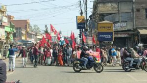 পশ্চিম মেদিনীপুর, নিজস্ব সংবাদদাতা:- কৃষকদের কাছ থেকে ন্যায্য মূল্যের ধান ক্রয় করা সহ একাধিক দাবি নিয়ে বুধবার পশ্চিম মেদিনীপুর জেলার গড়বেতা তিন নম্বর ব্লকের চন্দ্রকোনারোড শহরে মিছিল করলো বাম সংগঠনের সারা ভারত কৃষক সভা। এই দিন চন্দ্রকোনারোড CPI(M) দলীয় কার্যালয় থেকে মিছিল বেড়িয়ে গোটা শহর পরিক্রমা করে। এই দিন এই মিছিলে কয়েকশো CPI(M) কর্মী সমর্থক পা মিলিয়েছেন। এইদিন মিছিল শেষে চৌরাস্তার মোড়ে রাস্তা অবরোধ করে বিক্ষোভ প্রদর্শন করে বাম সংগঠনের কর্মী সমর্থকেরা। অভিযোগ সেই সময় পুলিশের সঙ্গে বাচচা বাঁধে কর্মীদের। পরে বিশাল পুলিশ বাহিনী এসে পরিস্থিতি স্বাভাবিক করে এবং বিক্ষোভ তুলে নিতে বাধ্য করে।