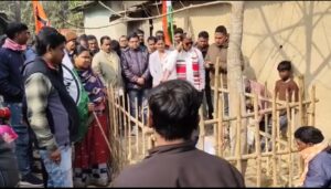 বালুরঘাট, নিজস্ব সংবাদদাতা :- মুখ্যমন্ত্রী মমতা বন্দ্যোপাধ্যায়ের উন্নয়নমূলক প্রকল্প ও সরকারের কাজের খতিয়ান সাধারণ মানুষের সামনে তুলে ধরতে রাজ্য জুড়ে তৃণমূল কংগ্রেসের উদ্যোগে চলছে ‘উন্নয়নের সংলাপ’ কর্মসূচি। সেই কর্মসূচিরই অঙ্গ হিসেবে মঙ্গলবার দক্ষিণ দিনাজপুরের তপন বিধানসভার অন্তর্গত প্রত্যন্ত গোফানগর এলাকায় পৌঁছলেন তৃণমূল নেতৃত্বরা।এদিন তপন পঞ্চায়েত সমিতির সভাপতির নেতৃত্বে কর্মসূচিতে অংশ নেন বালুরঘাট ব্লক তৃণমূল কংগ্রেসের সভাপতি মলয় মণ্ডল, জেলা পরিষদের সদস্য অশোক কৃষ্ণ কুজুর, বালুরঘাট ব্লক আইএনটিটিইউসি সভাপতি রাজীব দাস-সহ দলের অন্যান্য নেতৃত্ব। এলাকার একটি মন্দিরে পুজো দিয়ে দিনের কর্মসূচির সূচনা হয়। এরপর বাড়ি বাড়ি গিয়ে প্রচার, পথসভা এবং সাধারণ মানুষের সঙ্গে সরাসরি মতবিনিময়ের মধ্য দিয়ে উন্নয়নের সংলাপ কর্মসূচি পালন করা হয়।
