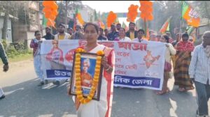 দেবাশীষ পাল, মালদাঃ—–বামনগোলা ব্লক বিজেপির পক্ষ থেকে স্বামী বিবেকানন্দে জন্মজয়ন্তী পালন করল সোমবার ১২ই জানুয়ারি বিশ্ব বরেণ্য সন্ন্যাসী স্বামী বিবেকানন্দের ১৬৪ তম জন্ম জয়ন্তী।যথাযোগ্য মর্যাদায় পালন করলেন বিজেপি।সোমবার দুপুরে বিজেপি পার্টি অফিস থেকে একটি র্যালি বের করে গোটা পাকুয়াহাটি এলাকা পরিক্রমা করে পাকুয়াহাট বিবেকানন্দ মোরে স্বামী বিবেকানন্দের মূর্তিতে মাল্যদান করেন বিজেপির নেতাকর্মীরা।এই র্যালিতে উপস্থিত ছিলেন উত্তর মালদার বিজেপির সভাপতি প্রতাপ সিং,উত্তর মালদা বিজেপি সাধারণ সম্পাদক বিনা সরকার কীর্তনীয়া,হবিবপুর বিধানসভা বিধায়ক জুয়েল মুর্মু,জেলা পরিষদের সদস্য তারাশঙ্কর রায়, মন্ডল সভাপতি তপন মন্ডল সহ বিজেপির নেতৃত্বরা।