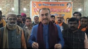 দেবাশীষ পাল, মালদা—- হবিবপুর বিধানসভার বুথ বিজয় সংকল্প সভা অনুষ্ঠিত হয়ে গেলো রবিবার।মালদার হবিবপুর বিধানসভার কেন্দপুকুর দলীয় কার্যালয়ে। বিহার রাজ্যে স্বাস্থ্য ও আইন মন্ত্রী তথা বিজেপির পশ্চিমবঙ্গের প্রদেশ পর্যবেক্ষক মঙ্গল পান্ডে মালদার হবিবপরে কেন্দপুকুর দলীয় কার্যালয়, পৌছাতেই বিজেপি উত্তর মালদার সাংগঠনিক জেলা সভাপতি প্রতাপ সিং দলীয় উত্তরীয় পরিয়ে ও ধামসা মাদল বাজিয়ে আদিবাসী নৃত্যের মধ্যে দিয়ে তাকে স্বাগতম জানান হয়।সেখান থেকে কেন্দপুকুর বাজারে স্বর্গীয় শ্যামাপ্রসাদ মুখার্জির আবক্ষ মূর্তিতে মাল্যদান করেন,বিহার রাজ্যে স্বাস্থ্য ও আইন মন্ত্রী তথা বিজেপির পশ্চিমবঙ্গের প্রদেশ পর্যবেক্ষক মঙ্গল পান্ডে।সেখানে কেন্দপুকুর দলীয় কার্যালয় হবিবপুর বিধান সভার হবিবপুর ও বামনগোলা ব্লকের বিজেপির নেতৃত্বদের নিয়ে বুথ বিজয় সংকল্প সভা অনুষ্ঠিত হয়।এর পরে সেখান থেকে আকতৈল অঞ্চলের শালবোদরা গ্রামে রসিক মুর্মু নামে একব্যাক্তির আদিবাসীবাড়িতে মধ্যাহ্নভোজন করেন। রবিবার এই বুথ বিজয় সংকল্প সভায় উপস্তিত ছিলেন বিহার সরকারের স্বাস্থ্য ও আইন মন্ত্রী তথা বিজেপির পশ্চিমবঙ্গের প্রদেশ পর্যবেক্ষক মঙ্গল পান্ডে, বিজেপি উত্তর মালদা সাংগঠনিক জেলার সভাপতি প্রতাপ সিং, উত্তর মালদা সাংসদ খগেন মুর্মু, হবিবপুর বিধানসভার বিধায়ক জোয়েল মুর্মু , হবিবপুর বিধানসভার কনভেনার প্রভাষ চৌধুরী সহ হবিবপুর বিধানসভার হবিবপুর ও বামনগোলার বিভিন্ন স্তরের বিজেপি নেতৃত্বরা।