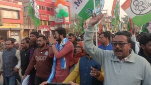 পশ্চিম মেদিনীপুর, নিজস্ব সংবাদাতা:-পশ্চিম মেদিনীপুর জেলার গড়বেতা তিন নম্বর ব্লকের চন্দ্রকোনারোড শহরে রাজ্যের বিরোধী দলনেতা শুভেন্দু অধিকারীর প্রতিবাদ মিছিলের পাল্টা মিছিল করলো ব্লক তৃণমূল। মঙ্গলবার বিকেলে চন্দ্রকোনারোড শহরের সাতবাঁকুড়া এলাকা থেকে মিছিল মিছিল শুরু হয়ে শহরের প্রাণকেন্দ্রে অর্থাৎ চৌরাস্তার মোড়ে পথসভার মধ্যে দিয়ে শেষ হয় এই পাল্টা মিছিল। এই দিন উপস্থিত ছিলেন রাজ্য তৃণমূলের মুখপাত্র দেবাংশু ভট্টাচার্য,এছাড়াও উপস্থিত ছিলেন সাংগঠনিক জেলা তৃণমূল কংগ্রেসের সভাপতি তথা বিধায়ক সুজয় হাজরা, শালবনী বিধানসভা কেন্দ্রের বিধায়ক তথা রাজ্যের প্রতিমন্ত্রী শ্রীকান্ত মাহাতো, বিধায়ক উত্তরা সিংহ হাজরা, জেলা পরিষদের পূর্ত কর্মাধ্যক্ষ নির্মল ঘোষ, রাজ্য যুব তৃণমূল কংগ্রেসের সম্পাদক সন্দীপ সিংহ, জেলা যুব তৃণমূল কংগ্রেসের সভাপতি নির্মাল্য চক্রবর্তী সহ একাধিক ব্লক ও জেলা নেতৃত্ব। এই দিন এই মিছিলে কয়েক হাজার তৃণমূল কর্মী সমর্থক পা মিলিয়েছেন। এই দিন বক্তব্য রাখতে গিয়ে রাজ্য তৃনমূলের মুখপাত্র দেবাংশু ভট্টাচার্য কার্যত গেরুয়া শিবিরকে একাধিক বিষয় নিয়ে নিশানা করলেন।