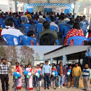 দক্ষিণ দিনাজপুর, নিজস্ব সংবাদদাতা:- মাহিনগর কিষাণ মান্ডিতে আজ এক উৎসবমুখর পরিবেশে অনুষ্ঠিত হলো রাজ্য সরকারের অন্যতম জনকল্যাণমূলক প্রকল্প সবুজ সাথী বাইসাইকেল বিতরণের ১১তম পর্যায়ের শেষ অধিবেশন। এই অনুষ্ঠানে মর্যাদাপূর্ণ উপস্থিতি ছিলেন দক্ষিণ দিনাজপুর জেলার জেলাশাসক বালাসুম্ভ্রমনিয়ান টি., যার উপস্থিতিতে গোটা অনুষ্ঠানটি স্বাভাবিকের তুলনায় আরও বেশি প্রাণবন্ত ও বর্ণাঢ্য হয়ে ওঠে।