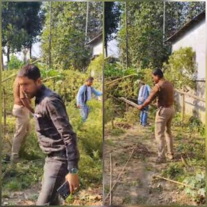 আলিপুরদুয়ার, নিজস্ব সংবাদদাতা:- বাড়িতে অবাধে চলছিলো গাঁজা চাষ। অবৈধভাবে গজিয়ে ওঠা এই গাঁজার গাছ নষ্ট করতেও রেয়াত করল না পুলিশ। দা’য়ের কোপে কেটে দিল একের পর এক গাছ। ঘটনাটি ঘটেছে শুক্রবার দুপুরে ফালাকাটা ব্লকের জটেশ্বর দুই নম্বর গ্রাম পঞ্চায়েতের ক্ষীরেরকোট এলাকায়। জটেশ্বর ফাঁড়ির ওসি দেবাশীষ রঞ্জন দেবের নেতৃত্বে পুলিশ বাহিনী ক্ষীরেরকোট এলাকার একটি বাড়িতে অভিযান চালিয়ে রোপণ করা প্রায় ২০টি গাঁজা গাছ কেটে পুড়িয়ে সম্পূর্ণভাবে নষ্ট করা হয়। যদিও ঘটনায় কাউকে গ্রেফতার করা সম্ভব হয়নি। এ প্রসঙ্গে জটেশ্বর ফাঁড়ির ওসি দেবাশীষ রঞ্জন দেব জানান, আগামী দিনেও এই ধরনের অভিযান অব্যাহত থাকবে।