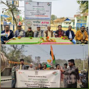 দক্ষিণ দিনাজপুর, নিজস্ব সংবাদদাতা:- বালুরঘাটে ২৫শে জানুয়ারী রবিবার সকালে জাতীয় ভোটার দিবস উদযাপন উপলক্ষ্যে একটি বিশেষ অনুষ্ঠান আয়োজিত হয়। ভারত সরকারের যুব বিষয়ক ও ক্রীড়া মন্ত্রণালয়ের অধীনে “মেরা যুবা ভারত” (মাই ভারত) – দক্ষিণ দিনাজপুর জেলার ব্যবস্থাপনায় এবং সবজি এটিএম ওয়েলফেয়ার সোসাইটির সহযোগিতায় এই অনুষ্ঠানটি জটালি মোড়ে অনুষ্ঠিত হয়।