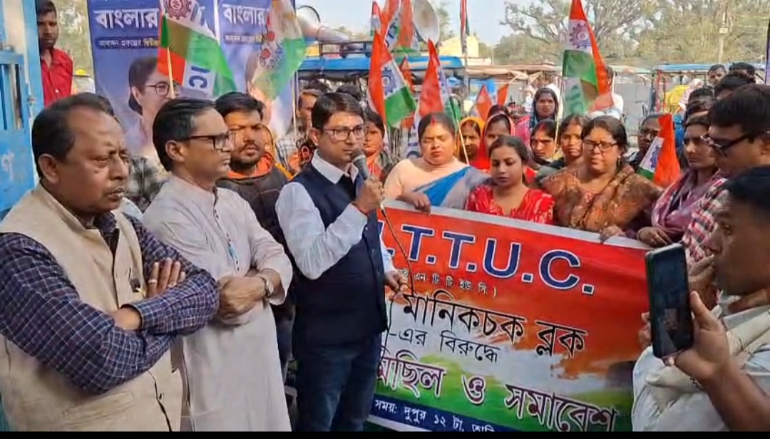 মালদা, নিজস্ব সংবাদদাতা:– বৃহস্পতিবার এসআইআর-এর বিরুদ্ধে মালদার মানিকচকে আন্দোলনে নামল তৃণমূলের শ্রমিক সংগঠন আইএনটিটিইউসি। আন্দোলনের অঙ্গ হিসেবে মিছিল করল মানিকচকের…