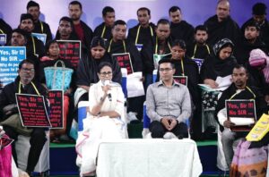 এদিন সাংবাদিক সম্মেলনেও কালো পোশাক পরে বসেন ‘ক্ষতিগ্রস্ত’দের পরিজনেরা। তাঁদের সঙ্গে নিয়েই সাংবাদিক বৈঠক করেন মমতা বন্দ্যোপাধ্যায়-অভিষেক। বলেন, “এসআইআর-এর নামে যেভাবে হয়রান করা হচ্ছে, তাতে মানুষ কোথায় যাবে, কোথায় বলবে? বারবার চিঠি দিয়েও উত্তর পাইনি। ৬টি চিঠি দিয়েছি। কোনও জবাব দেওয়া হয়নি। সুপ্রিম কোর্টের নির্দেশও এরা মানছে না। তাই কমিশনের সঙ্গে দেখা করতে নিয়ে এসেছিলাম। এখানে দিল্লি পুলিশ নিয়ে হেনস্থা করা হল।”