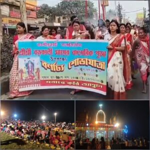 ধুপগুড়ি, নিজস্ব সংবাদদাতা:- শতাব্দী প্রাচীন পরম্পরা আর অটুট বিশ্বাসকে পাথেয় করে ধূপগুড়ির কালীরহাটের বড়কালী মায়ের বাৎসরিক পুজোর মহোৎসব শুরু হলো। এদিন ধূপগুড়ি ডাকবাংলো ময়দান থেকে শুরু হয় মায়ের ঐতিহ্যবাহী ‘হাট ঘোরানো’ শোভাযাত্রা। কয়েক হাজার পুণ্যার্থীর অংশগ্রহণে এই শোভাযাত্রা শহর ছাড়িয়ে গ্রামের অলিতে-গলিতে ছড়িয়ে পড়ে। ডাকবাংলো থেকে শুরু হয়ে ধূপগুড়ির প্রধান রাজপথগুলি পরিক্রমা করে শোভাযাত্রাটি শেষ হয় কালীরহাট মন্দির প্রাঙ্গণে।