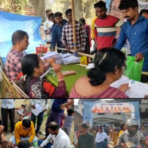 দক্ষিণ দিনাজপুর-বালুরঘাট, নিজস্ব সংবাদদাতা : – মাননীয় মুখ্যমন্ত্রী মমতা ব্যানার্জি রাজ্যের বেকার যুবক-যুবতীদের কিছু সহায়তার লক্ষ্যে যুব সাথী নামে একটি প্রকল্প চালু করেছেন। আগামী এপ্রিল মাস থেকে সেই প্রকল্পে যুবক-যুবতীদের টাকা করে পাবার কথা। সেই ফরম ফিলাপ চলছে রাজ্যজুড়ে। প্রতিদিনই রাজ্যজুড়ে প্রতিটি ক্যাম্পে প্রচুর মানুষ ভিড় জমাচ্ছেন। বালুরঘাট ব্লকের বালুরঘাট পঞ্চায়েত সমিতি অফিস চত্বরে চলা ক্যাম্পেও প্রচুর মানুষ ফরম ফিলাপ করতে আসছেন। সেখানেই সাধারণ মানুষের সাহায্য করতে তৃণমূল নেতাকর্মীদের পুরো পঞ্চায়েত সমিতির জনপ্রতিনিধিদের সাধারণ মানুষকে সাহায্য করতে নিয়ে পড়তে দেখা যাচ্ছে। সোমবার দুপুরে বালুরঘাট পঞ্চায়েত সমিতির অফিস চত্বরে গিয়ে দেখা গেল পঞ্চাশ সমিতির সভাপতি অরূপ সরকার খোদ নিজেই ফরম ফিলাপ করতে আসা মানুষজনের সহায়তায় ফরম ফিলাপ করে দিচ্ছেন। শুধু পঞ্চায়েত সমিতির সভাপতি নয় পঞ্চায়েত সমিতির বিভিন্ন দপ্তরের কর্মাধ্যক্ষরাও একইভাবে সহায়তায় নেমে পড়েছেন। সেদিন দুপুরে বালুরঘাট পঞ্চায়েত সমিতির অফিস চত্বরে গিয়ে দেখা গেল ৫০ সমিতির সভাপতি সকলের সাথে একসঙ্গে মাটিতে বসেই সাধারণ মানুষের জন্য করে দিচ্ছেন। এই প্রসঙ্গে পঞ্চায়েত সমিতির সভাপতি অরূপ সরকার বলেন আপনারা জানেন গত ১৫/২/২০২৬ তারিখ থেকে রাজ্যের মানবিক মুখ্যমন্ত্রী মমতা ব্যানার্জি যে স্বনির্ভর বাংলা পুরনের লক্ষ্যে বিধানসভাওয়ারী যে যুব সাথীর ক্যাম্প আয়োজন করেছেন সেই ক্যাম্প আমাদের পঞ্চায়েত সমিতিতেও হচ্ছে। এখানে লক্ষ্মীর ভান্ডার ফরম ফিলাপ হচ্ছে, ভূমিহীন কৃষকদের জন্য ভাতা দেওয়ার লক্ষ্যে মুখ্যমন্ত্রী যে ঘোষণা করেছেন সেই ফরম ফিলাপ হচ্ছে পাশাপাশি যুব সাথী প্রকল্পের ফরম ফিলাপ হচ্ছে। এখানে জাতি ধর্মবর্ণ নির্বিশেষে সমস্ত রাজনৈতিক দলের কর্মীরাই আসছেন এবং ফরম ফিলাপ করছেন। প্রচুর মানুষ এখানে ফরম ফিলাপ করছেন তাই আমরা প্রচুর হেল্প ডেক্স করেছি আমি নিজেও একটি হেল্প ডেক্স এ বসে মানুষের সহায়তা করছি। এই প্রসঙ্গে বালুরঘাট পঞ্চায়েত সমিতির প্রাক্তন সভাপতি তথা বর্তমান কর্মাধ্যক্ষ কল্পনা কিস্কু বলেন আজ যুব সাক্ষী প্রকল্পে যারা ফরম ফিলাপ করছে তাদের সহায়তা করার জন্য এসেছিলাম সঙ্গে সঙ্গে ভূমিহীন কৃষকদের যে ফরম ফিলাপ চলছে তাদের ও সহায়তার জন্য এসেছিলাম। এরপরেই তিনি যুব সাথী সহ বিভিন্ন ভাতা নিয়ে বিরোধীর রাজ্যে কটাক্ষ করছেন সেই কটাক্ষের জবাব দিতে গিয়ে বলেন বিরোধীদের স্বভাবই হলো বিরোধিতা করা তাতে আমাদের কিছু যায় আসে না। এখানে অনেক বিরোধী রাই আছেন যারা এই প্রকল্পগুলির বিরোধিতা করছেন কিন্তু ের তারা এবং তাদের পরিবাররা কিন্তু এসে এখানে ফরম ফিলাপ করে যাচ্ছেন। তা