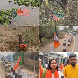 মালদা, নিজস্ব সংবাদদাতা:- কোচবিহার থেকে শুরু হওয়া পরিবর্তন যাত্রা আগামীকাল শনিবার মালদাহে আসতে চলেছে। সেই উপলক্ষে বিভিন্ন জায়গার পাশাপাশি বামনগোলা ব্লকের আমতলী ব্রিজ হয়ে এই পরিবর্তন যাত্রা দক্ষিণ দিনাজপুর থেকে আসবে। সেই উপলক্ষে মালদায় প্রবেশ করার আগেই, আমতলী ব্রিজের উপরে সহ ব্রিজের পার্শ্ববর্তী এলাকায় ভারতীয় জনতা পার্টির পতাকা টাঙ্গানো হয়েছিল। হঠাৎই আজ সকাল থেকেই সেই পতাকা গুলি ব্রিজের নিচে ছিঁড়ে ফেলা হয়েছে। এই নিয়ে ক্ষোভ উগ্রে দিয়েছেন বিজেপির উত্তর মালদার সাধারণ সম্পাদক বিনা সরকার কীর্তনীয়া।তিনি অভিযোগ করে বলেন – পরিবর্তন যাত্রা উপলক্ষে মালদা জেলার বিভিন্ন জায়গার পাশাপাশি বামনগোলা ব্লকের, আমতলী ব্রিজে বিজেপির পতাকা লাগানো থাকলেও।সেই পতাকা ছিড়ে ফেলেছে তৃণমূলের গুন্ডাবাহিনী।বিজেপির তোলা অভিযোগ তৃণমূলের তরফে পূর্নিমা বারুই, জেলা পরিষদের কর্মাধ্যক্ষ বলেন কথাটা ছিঁড়ে ফেলার অভিযোগ ভিত্তিহীন। তৃণমূল এগুলোর সাথে কোনভাবেই জড়িত নয়। এমন অভিযোগ থাকলে প্রশাসনের দ্বারস্থ হোক বিজেপি আইন ব্যবস্থা নেবে।এই নিয়ে শুরু হয়েছে রাজনৈতিক তরজা।