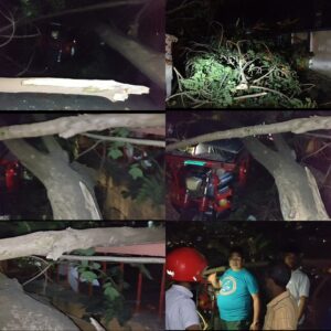 মালদা, নিজস্ব সংবাদদাতা :- আচমকায় রাতে ঘূর্ণিঝড় আর সেই ঝড়ে গাছ ভেঙ্গে পড়ল টোটোর উপর, আহত টোটো চালক ও এক মহিলা,বর্তমানে ভর্তি মালদা মেডিকেল কলেজ ও হাসপাতালে। জানা যায়, রবিবার রাত্রি প্রায় নটা নাগাদ হঠাৎ করে আচমকা ঘূর্ণিঝড় ওঠে সেই সময় মালদা শহরের বৃন্দাবনি মাঠের পাশ্ববর্তী এলাকা গান্ধী মূর্তির পাশে চলন্ত টোটোর উপর বড় গাছের ডাল ভেঙে পড়ে টোটো উপরে দুমড়ে মুছরে যায় টোটো এবং সেই টোটোতে থাকা চালক এবং এক মহিলা গুরুতর অভাবে আহত হয়, পথ চলতি মানুষ তরিঘড়ি সেখান থেকে তাদেরকে উদ্ধার করে মালদা মেডিকেল কলেজ ও হাসপাতালে নিয়ে যায় বর্তমানে তারা চিকিৎসাধীন রয়েছে । খবর পেয়ে ঘটনাস্থলে প্রশাসনিক কর্মীরা গিয়ে রাস্তা থেকে গাছ সরানোর ব্যবস্থা করে।
