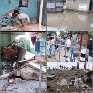 মালদা, নিজস্ব সংবাদদাতা: — একদিনের বৃষ্টিতে ধস নামলো আবার আইহো ব্রিজের।মালদা নালাগোলা রাজ্য সড়কের আইহো ব্রিজ গুরুত্ব বহু। মালদা নালাগোলা রাজ্য সড়কের একটি মাত্র ব্রিজ যার উপর নির্ভর করে দৈনিক ৮০ টি বাস সহ বিভিন্ন যানবাহন নিয়ে প্রায় এক হাজারো বেশি যানবাহন চলাচল করে। এই ব্রিজের কয়েকদিন আগেই কাজ শেষ হয়েছে। তার মাঝে ধস নামল ব্রিজের গার্ড ওয়ালের একাংশের।স্থানীয় বাসিন্দারা অভিযোগ করে বলেন নিম্ন মানের কাজের জন্যই এই ব্রিজের বেহাল অবস্থা। যেকোনো মুহূর্তে দুর্ঘটনা ঘটতে পারতো স্থানীয়রা আরো অভিযোগ করে বলেন ব্রিজের পাশে রয়েছে একটি বাড়ি যার বাড়ির ও ধস নেমেছে সেই ধসের অবস্থা ব্রিজে পাশে দারিয়ে দেখতে গিয়ে ব্রিজে ধসে পা আটকে পড়ে এক ব্যক্তির। ভেঙে যাওয়া বাড়ির মালিক জানান পি ডব্লিউ ডি ব্রিজের কাজ চলাকালী রাস্তার মাটি তার বাড়ির পাশে রাখার ফলেই বাজারে সম্পূর্ণ জল এই রাস্তা দিয়ে নামে সেখানে বন্ধ হয়ে যাওয়া ফলে তার বাড়ির ভেঙে তল দিয়ে জল বেরিয়ে পড়ে যার ফলে ঘরের ভেতরে এক কোমর গর্ত হয়ে টাকা পয়সা সহ বেশ কিছু সামগ্রিক মাটির মধ্যে পড়ে ঢুকে গিয়েছে।অসহায় অবস্থায় স্থানীয় গ্রাম পঞ্চায়েতের সদস্য বা প্রধানকে জানালে কোন সদুক্ত পাইনি।ভোটের প্রাক্কালে ক্ষোভ উগড়ে দিয়েছেন অসহায় ওই পরিবার।কোন স্থানীয় জন প্রতিনিধ তার বাড়িতে দেখতে আসেনি বলে অভিযোগ।সংবাদ মাধ্যমের ছবি তুলে ধরতেই ট্রাফিকের তরফে ব্যারিকেট দেওয়ার ব্যবস্থা করেন।যদিও এ বিষয়ে ঠিকাদার সংস্থার সাথে যোগাযোগ করা হলে তার কোন যোগাযোগ করো পাওয়া যায়নি।