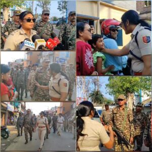 পশ্চিম মেদিনীপুর, নিজস্ব সংবাদদাতা:- পশ্চিম মেদিনীপুর জেলার বেলদায় বিধানসভা নির্বাচনকে কেন্দ্র করে কেন্দ্রীয় বাহিনী নিয়ে রুটমার্চ করলেন জেলা পুলিশ সুপার পাপিয়া সুলতানা। পাশাপাশি এদিন তিনি পথ চলতি মানুষ ও এলাকার মানুষ দোকানদারদের সঙ্গে কথা বলেন নির্ভয়ে ভোট দান করার কথা বলেন। তিনি বলেন নির্ভয় ভোট দিন আমরা সব সময় আপনাদের পাশে আছি। এবং পথ চলতি হেলমেট বিহীন বাইক আরোহীদের সচেতন করেন হেলমেট পরে বাইক চালানোর জন্য। কেন্দ্রীয় বাহিনীকে একাধিক নির্দেশ দেন এবং ভালোভাবে এলাকা নজর রাখার কথা বলেন।