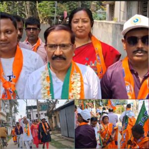 বালুরঘাটে বিজেপি প্রার্থী বিদ্যুৎ কুমার রায়ের প্রচার: “পাল্টানো দরকার, চাই বিজেপি সরকার”।