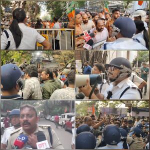 কলকাতা, নিজস্ব সংবাদদাতা:- .কলকাতায় ইলেকশন কমিশনের দফতরের বাইরে তৃণমূল কংগ্রেস ও বিজেপি কর্মী-সমর্থকদের মধ্যে তীব্র উত্তেজনা ও ধস্তাধস্তির ঘটনা ঘটল। ঘটনাকে কেন্দ্র করে এলাকায় চাঞ্চল্য ছড়িয়ে পড়ে।