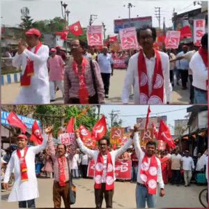 বালুরঘাট, নিজস্ব সংবাদদাতা :- বিধানসভা নির্বাচনকে সামনে রেখে বুধবার বামফ্রন্টের পক্ষ থেকে দক্ষিণ দিনাজপুর জেলার চারটি গুরুত্বপূর্ণ কেন্দ্রে মনোনয়ন জমা দিলেন প্রার্থীরা। বালুরঘাট, তপন, গঙ্গারামপুর ও কুমারগঞ্জ—এই চার বিধানসভা কেন্দ্রের মনোনীত প্রার্থীরা এদিন জেলা শাসকের দফতরে গিয়ে আনুষ্ঠানিকভাবে নমিনেশন পেশ করেন।দুপুর প্রায় একটা নাগাদ বালুরঘাটের যুবশ্রী মোড় থেকে বিশাল মিছিলের মাধ্যমে প্রার্থীরা জেলা শাসকের দফতরের উদ্দেশ্যে রওনা দেন। বামফ্রন্ট কর্মী-সমর্থকদের উপস্থিতিতে মিছিল ঘিরে তৈরি হয় উৎসবমুখর পরিবেশ। স্লোগান, পতাকা আর ব্যানারে মুখরিত হয়ে ওঠে গোটা এলাকা। পরে দুপুর দেড়টা থেকে পৌনে দু’টার মধ্যে প্রার্থীরা জেলা শাসকের কার্যালয়ে পৌঁছে মনোনয়ন জমা দেন।জানা গিয়েছে, বালুরঘাট কেন্দ্রে আরএসপি প্রার্থী হিসেবে লড়ছেন অর্ণব চৌধুরী। তপন বিধানসভায় প্রার্থী করা হয়েছে আরএসপির বাপ্পাই হোরোকে। কুমারগঞ্জ কেন্দ্রে সিপিএমের প্রার্থী মোফাজ্জল হোসেন এবং গঙ্গারামপুরে সিপিএমের হয়ে প্রতিদ্বন্দ্বিতা করছেন বিপ্লব সরকার।এদিনের কর্মসূচিকে ঘিরে বামফ্রন্ট শিবিরে ছিল স্পষ্ট উৎসাহ ও উদ্দীপনা, যা আসন্ন নির্বাচনে সংগঠনের মনোবল বাড়াবে বলেই মনে করছেন রাজনৈতিক মহল।