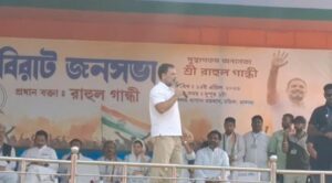 মালদা, নিজস্ব সংবাদদাতা:— মঙ্গলবার দুপুর প্রায় ১টা নাগাদ মালদার চাঁচলের কলমবাগান মাঠে নির্বাচনী জনসভায় যোগ দেন কংগ্রেস নেতা Rahul Gandhi। সভাস্থলে উপস্থিত ছিলেন প্রদেশ কংগ্রেস সভাপতি শুভঙ্কর সরকার, চাঁচলের প্রার্থী আসিফ মেহেবুব, মালতিপুরের প্রার্থী Mausam Benazir Noor, এবং দক্ষিণ মালদার সাংসদ Isha Khan Choudhury-সহ জেলার ১২টি বিধানসভার প্রার্থীরা। ঢাকঢোল বাজিয়ে কর্মী-সমর্থকদের ব্যাপক উপস্থিতিতে সভা জমে ওঠে।