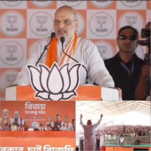 পশ্চিম মেদিনীপুর, নিজস্ব সংবাদদাতা:- মঙ্গলবার শেষ দিনে নির্বাচনী প্রচারে পশ্চিম মেদিনীপুর জেলার গড়বেতা তিন নম্বর ব্লকের চন্দ্রকোনারোড ফুটবল ময়দানে নির্বাচনী জনসভা করলেন কেন্দ্রীয় স্বরাষ্ট্রমন্ত্রী অমিত শাহ। এই দিন শালবনী বিধানসভা কেন্দ্রের বিজেপি প্রার্থী বিমান মাহাতোর সমর্থনে এই জনসভা করা হয়। এই জনসভায় বক্তব্য রাখতে গিয়ে অমিত শাহ বলেন শালবনীতে জিন্দাল কারখানা এখনো সম্পূর্ণ প্রজেক্টের কাজ হয়নি, তবে বিজেপি সরকার ক্ষমতায় এলে তা প্রধানমন্ত্রীর হাত ধরেই তৈরি করা হবে। পাশাপাশি অনুপ্রবেশকারীদের দেশের বাইরে পাঠানো হবে। এবং দুর্নীতির সঙ্গে যুক্ত সমস্ত অপরাধীদের জেলে ভরা হবে। এই দিন কেন্দ্রীয় স্বরাষ্ট্রমন্ত্রীসহ উপস্থিত ছিলেন রাজ্য ও জেলার একাধিক বিজেপির নেতাকর্মীরা।