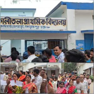 ইভিএম বিভ্রাটে দেরিতে ভোট শুরু, গঙ্গারামপুরে বুথে লম্বা লাইন।