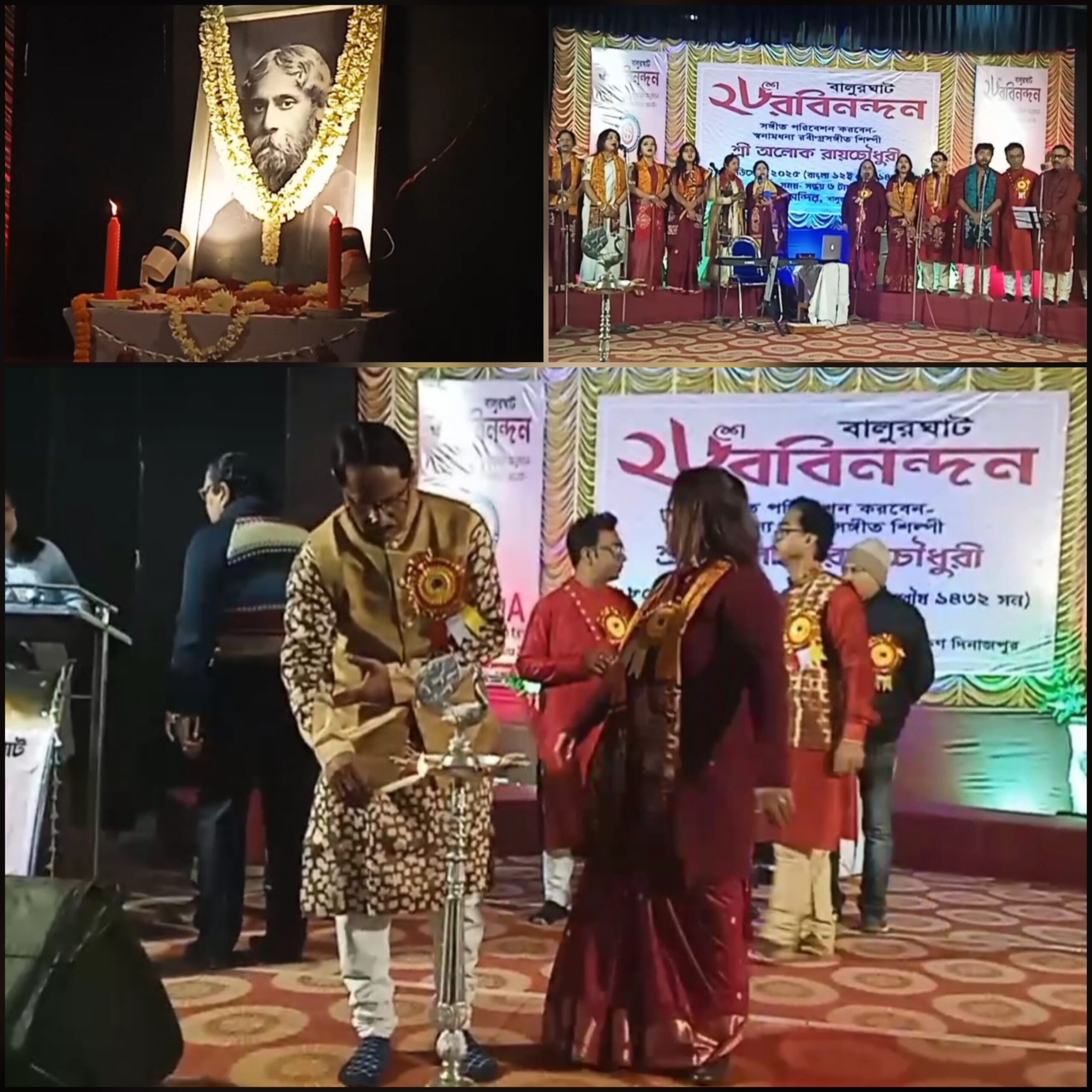 দক্ষিণ দিনাজপুর, নিজস্ব সংবাদদাতা:- ছাব্বিশ তম বর্ষের সংস্কৃতির আলোকে উদ্ভাসিত ”বালুরঘাট রবিনন্দন”। ২৮শে ডিসেম্বর রবিবার সন্ধ্যায় বালুরঘাট নাট্যমন্দিরে ভরা প্রেক্ষাগৃহে…