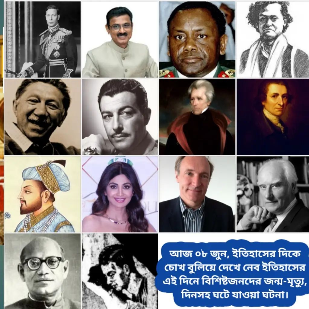 আজ ০৮ জুন। এক নজরে দেখে নিই ইতিহাসের এই দিনে ঘটে যাওয়া উল্লেখযোগ্য ঘটনা, বিশিষ্টজনদের জন্ম-মৃত্যু দিনসহ গুরুত্বপূর্ণ আরও কিছু…